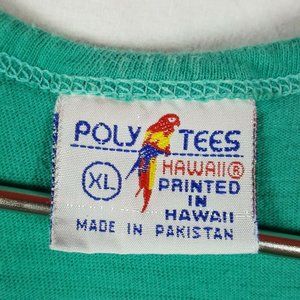 Vintage 1990 Poly Tees Hawaii Beach Bum Cannon Beach Oregon Coast Tank Top XL Green Single Stitch Puffy Paint Sunglasses Summer