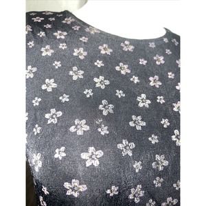 Vintage 90s Black Sparkly flower floral Print Women M Slinky stretchy Maxi Dress y2k