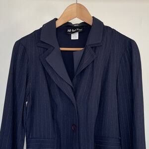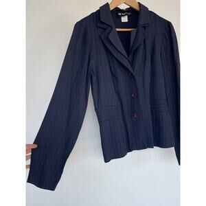 Vtg 90s Blue Pin Striped Fitted Blazer Jacket ALL THAT JAZZ Office Siren Sz 9/10