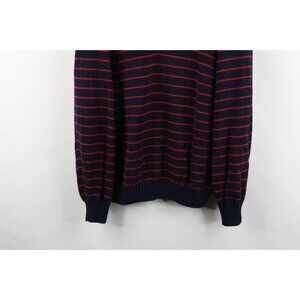 Vtg 90s Brooks Brothers Mens L Faded Heavy Cotton Knit Striped Collared Sweater