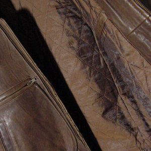 Vtg 90's Brown Leather "New River" Bomber jacket Sz L .Good Shape . Small Cut at Right Shoulder .