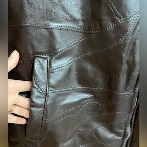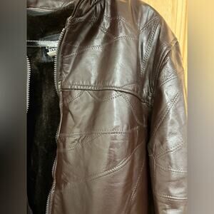Vtg 90s Brown Patchwork Leather Removable Furry Liner Western Boho Coat M