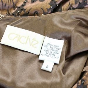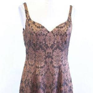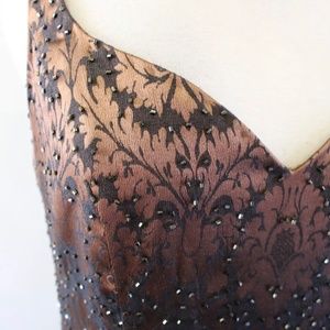 Vtg 90s Cache Brown Black Jacquard Fringe Sequin Beaded Cocktail Party Dress 6