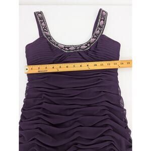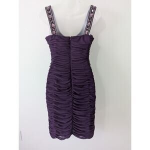 Vtg 90s Cache Size 8 Purple Bodycon Beaded Ruched Cocktail Dress Prom Event New
