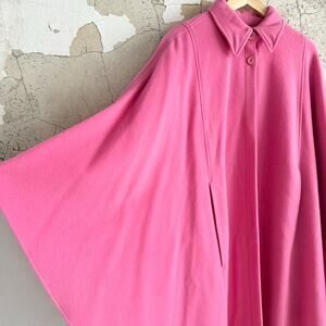 Vtg 90s Cape Coat Pink 100% Wool Swing Overcoat Button Front Poncho Capelet Glam