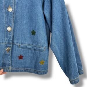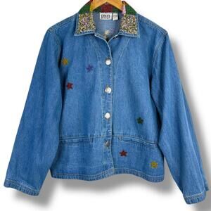 Vtg 90s Chicos Design Stargazer Denim Jean Jacket Beaded Design Size 1 Medium 8