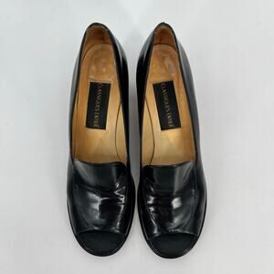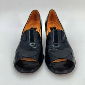 Vtg 90s Classiques Entier Peep Toe Pump Womens 9 N Black Leather Block Heel Shoe
