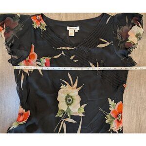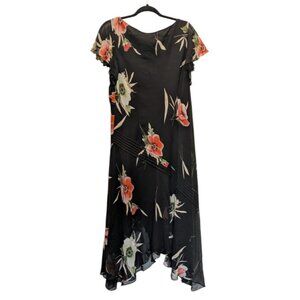 Vtg 90s Coldwater Creek 100% Silk Floral Midi Sz 16 Dress