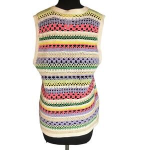 Vtg 90s Colorful Crochet Open Knit Oversized Sweater Vest
