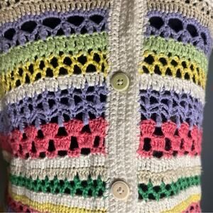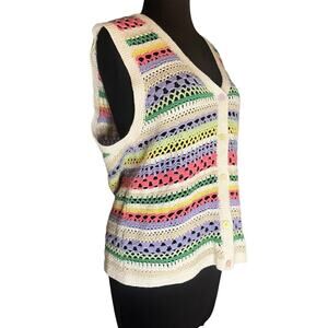Vtg 90s Colorful Crochet Cottagecore Oversized Soft Girl Granny Sweater Vest S