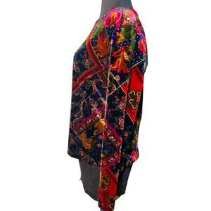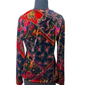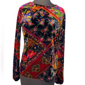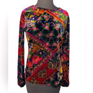 Vtg 90s Colorful Velvet Floral Boho Whimsigoth Fairy Top S Artsy Feminine
