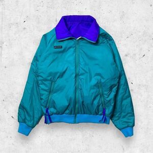 Vtg 90s Columbia Softshell Reversible Puffer Jacket, Purple Teal, Pockets, L