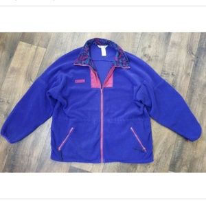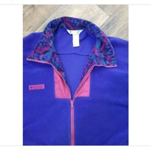 Vintage 90's Columbia Women's Size XL Full Zip Purple Southwestern Aztec Fleece Jacket Coat. Drawstring inside waist in inner lining.