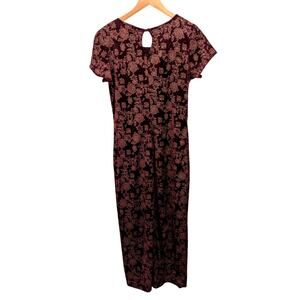 Vtg 90s Crushed Velvet Maxi Dress Sz M Floral Grunge No Boundaries Burgundy Y2K