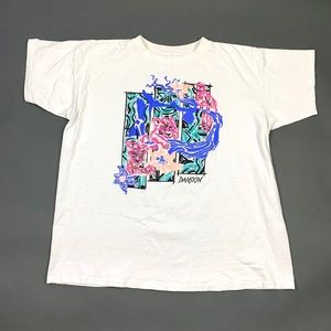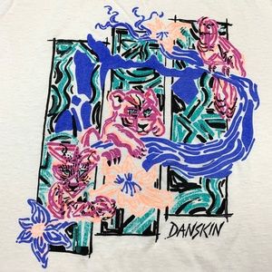 Vtg 90s Danskin Retro Abstract Floral Cheetah Graphic Single Stitch T-Shirt