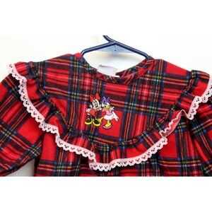 Vtg 90s Disney Plaid Classic Nightgown sz 2T Red Flannel Minnie Daisy Holiday