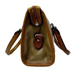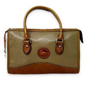 Vtg 90s Dooney & Bourke All-Weather Pebbled Leather Satchel Bag Purse Tan/Brown