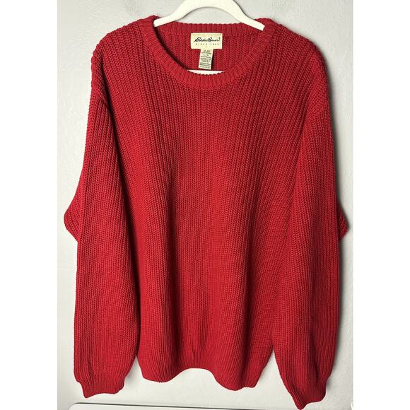 Vtg 90s Eddie Bauer Mens Large Red Cotton Knit Crewneck Sweater Chunky