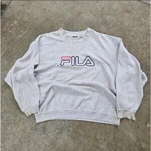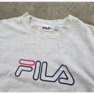 Vtg 90s FILA Classic Logo Distressed Faded Crewneck Sweatshirt Gray Large