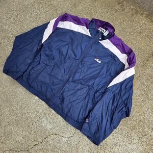 vtg 90s FILA small embroidered logo colorblock two tone baggy zip up windbreaker track jacket