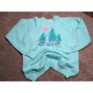 Vtg 90s FOTL XL Aqua Nature Sweatshirt Faded Mountains Trees Graphic Crewneck