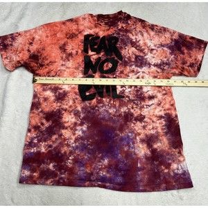 Vtg 90s Fear No Evil Luke 10.19 Jesus Single Stitch Tie-Dye T-Shirt Size Large. Small pinhole on the front of the tee. Please see pictures for condition and measurements for proper sizing and fit.