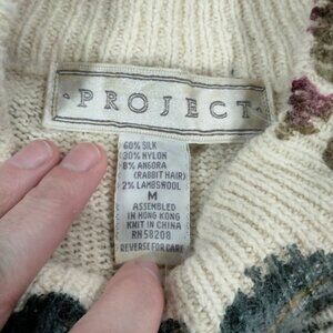 Vtg 90s Floral Angora Silk Lambs Wool Cottage Rose Prairie Grandma Sweater M