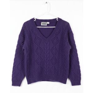 Vintage Forenza Womens Small sweater mohair wool purple barbie preppy chic cable knit