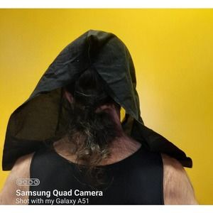 Vtg 90's GLOWS IN DARK Bony face bloody fang teeth hooded mask. Haunted House, cosplay trick or treat scary mask. Halloween Costume