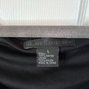Vtg 90s Guess Collection Sz Large Black V-neck Long Dress w Crochet Pointed Hem