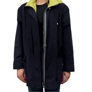 Vtg 90s IZZI SPORT Navy Lime Spring Jacket Full Zip Hooded Coat Oversized Sz S