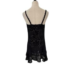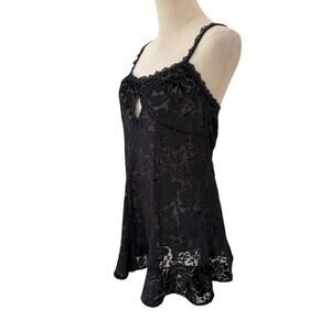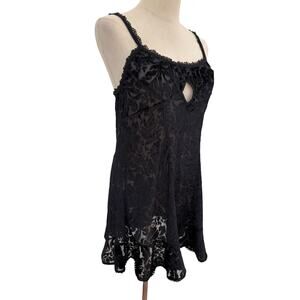 VTG 90s Intimates by Flora Black Burnout Velvet Babydoll Nightie Lace Trim Keyhole M