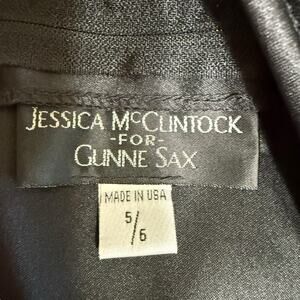 The product is a vintage 90s Jessica McClintock maxi A-line skirt in size 5/6, designed in a romantic goth style. The skirt is black in color with a waist size of 27 inches and a hip size of 46 inches. Made in the United States, this original piece has a waist to hem length of 40 inches, making it perfect for formal occasions with a goth look. The brand Jessica McClintock is known for its unique and stylish vintage clothing, making this skirt a standout piece for any wardrobe.