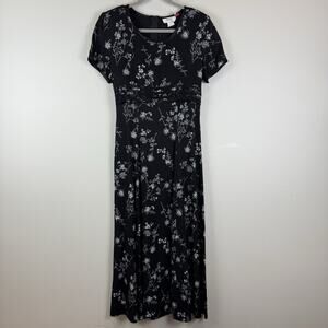 Vtg 90s Jody California Floral Midi Dress Sz 9 Black Ruffle Modest Cottagecore