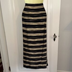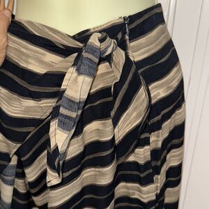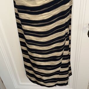 Vtg 90s Jones New York black, cream & gray horizontal striped wrap look skirt