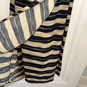 Vintage 90s Jones New York black, cream & gray horizontal striped wrap look rayon skirt