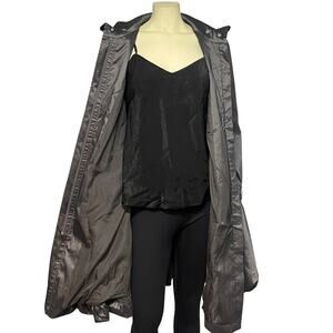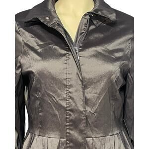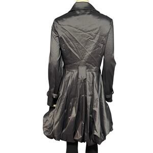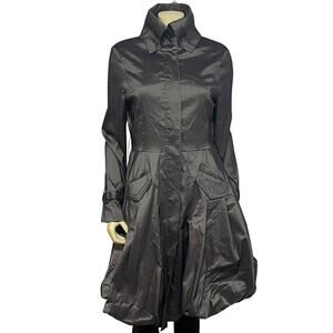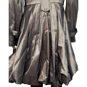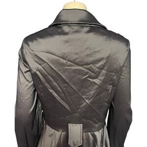 Vtg 90s Joseph Ribkoff Sz 10 Trench Coat Bubble Hem Gray Satin Glam Statement