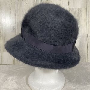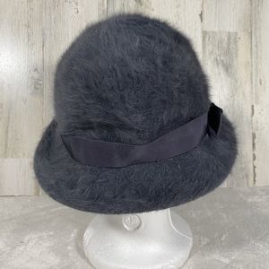 Vtg 90's Kangol Furgora Linda Bucket Hat Blue Gray Angora Fur Y2K Bow Classic