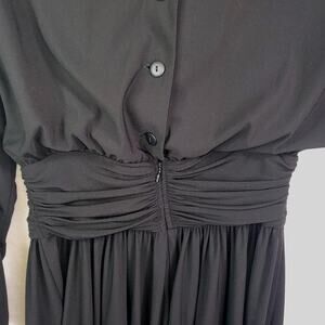Vtg 90s LIZ CLAIBORNE Black Button Down Back Empire Waist Maxi Dress Sz 8 Medium