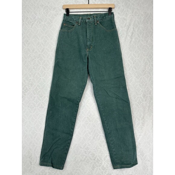 Vtg 90s Lands End Ankle Jeans Womens 6 Tall Green Denim Taper Leg Mom Grunge