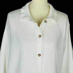 Vintage 1990's Lands' End classic full button cardigan in size large. Made in the USA of 100% snow white cotton. Measures 26.5" armpit to armpit, 24.75" neck to tail, 23" sleeve. Excellent condition with no holes, tears, stains, or ripped seams. Smoke free, pet friendly home.