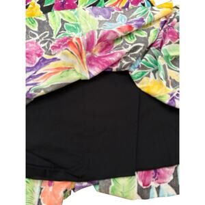 Channel bold 90s resort vibes with this vibrant vintage Lauren Ralph Lauren pleated skirt. Made from 100% cotton, this skirt features a striking tropical floral print in rainbow hues against a black background. The full silhouette creates beautiful movement, while the black lining provides comfort and coverage. A timeless piece perfect for summer events, vacations, or everyday statement style.