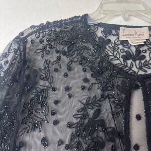 Vtg 90s Laurence Kazar 2X black beaded open blouse top whimsigoth Nicks formal