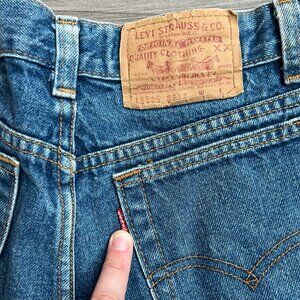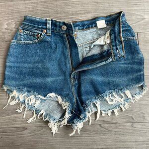 Vtg 90s Levi’s Denim Cutoffs Shorts Medium Wash High Rise Distressed Size 28”
