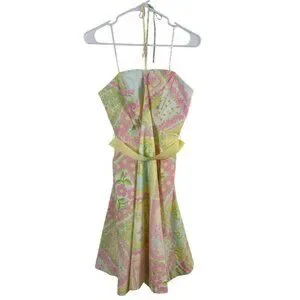 Vtg 90s Lilly Pulitzer Halter Dress Size 4 Pink Yellow Patchwork Cotton Preppy
