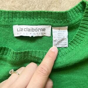 Vtg 90s Liz Claiborne Merino Wool Sweater Kelly Green Preppy Twee Minimalist
