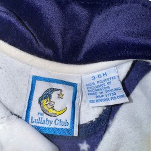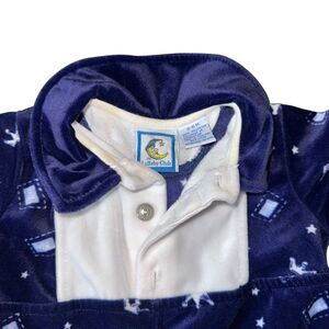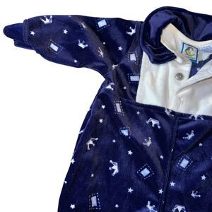 This vintage 90s Lullaby Club Little Prince onesie is a soft and cozy sleeper for baby boys aged 3-6 months. The blue velvet fabric with star pattern and long sleeves makes it perfect for the winter and fall seasons. The snap closure and lightweight design ensure comfortable wear for little ones. The onesie features a prince and crown theme, adding a charming touch to the overall style. Made in the United States, this one-piece outfit from the Lullaby Club brand is a nostalgic and stylish choice for your baby.