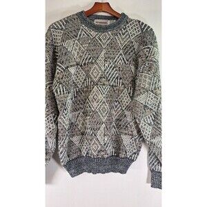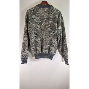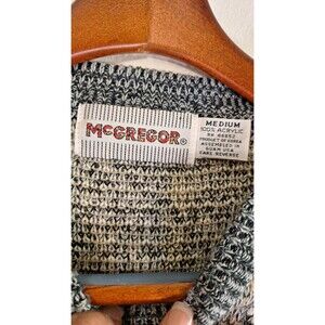 This vintage McGregor sweater is a must-have for any fashion-forward man. With a classic cable-knit design and argyle/diamond pattern, it's perfect for any occasion, whether it be casual, workwear, or business attire. The sweater features a crew neck and long sleeves, making it ideal for the colder seasons of fall and winter. The lightweight and breathable fabric ensure comfort, while the collarless design adds a touch of style. The sweater is a size M and fits regular size type. It's easy to care for with dry clean only instructions. This sweater is perfect for anyone who wants to embrace the Western, school, university, geek, dad, college, teacher, outdoor, classic, 90s, or preppy theme. It's also great for walking or dancing activities. PTP 22.5in. Length 27in.