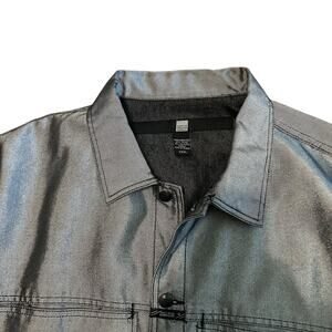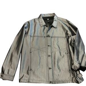Vtg 90s Marithe Francois Girbaud XXXL Black Metallic Denim Jacket Hip Hop Y2K