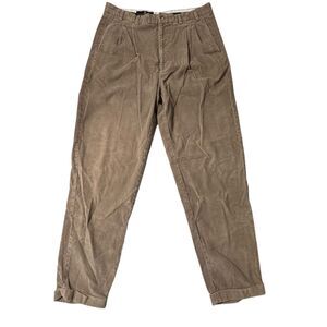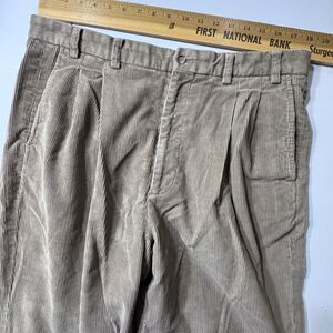 Vtg 90s Mens 36x30 Beige Tan Pleated Cuffed Wide Leg Corduroy Pants Preppy